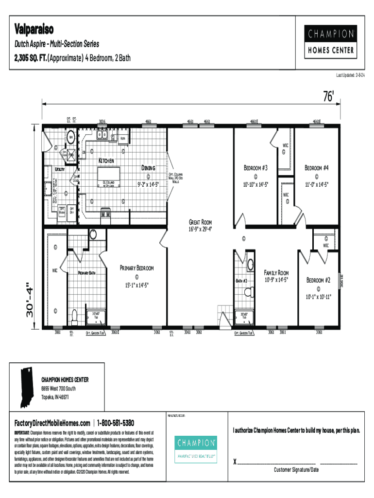 2,305 SQ. FT. (Approximate) 4 Bedroom, 2 Bath