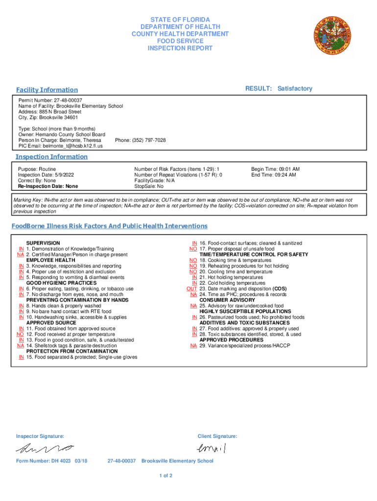 INSPECTION REPORTRESULT: SatisfactoryFacility Information
