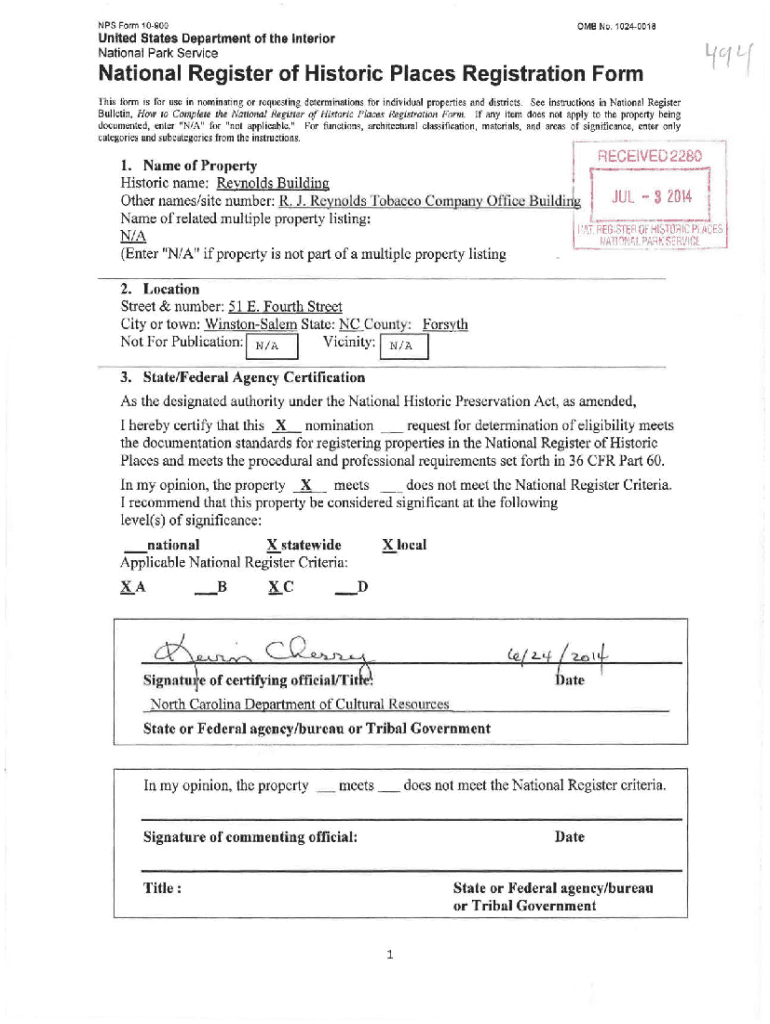 0 MB No. 10240018NPS Form 10900United States Department of the Interior