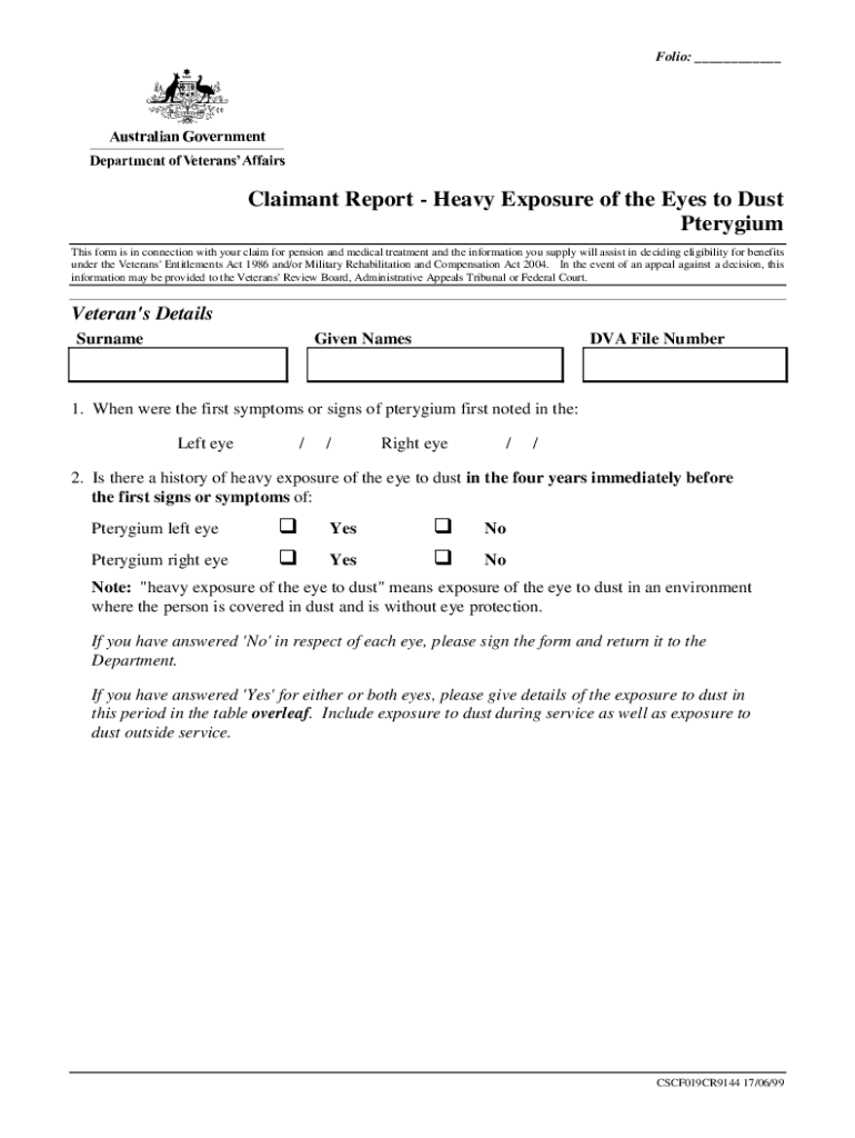 PterygiumThis form is in connection with your claim for pension and medical treatment and the information you supply will assist in deciding