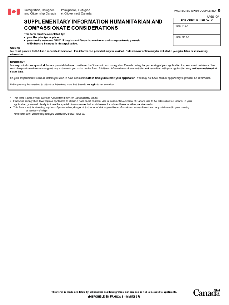 Get the free IMM 5283 E : Supplementary Information Humanitarian and ...