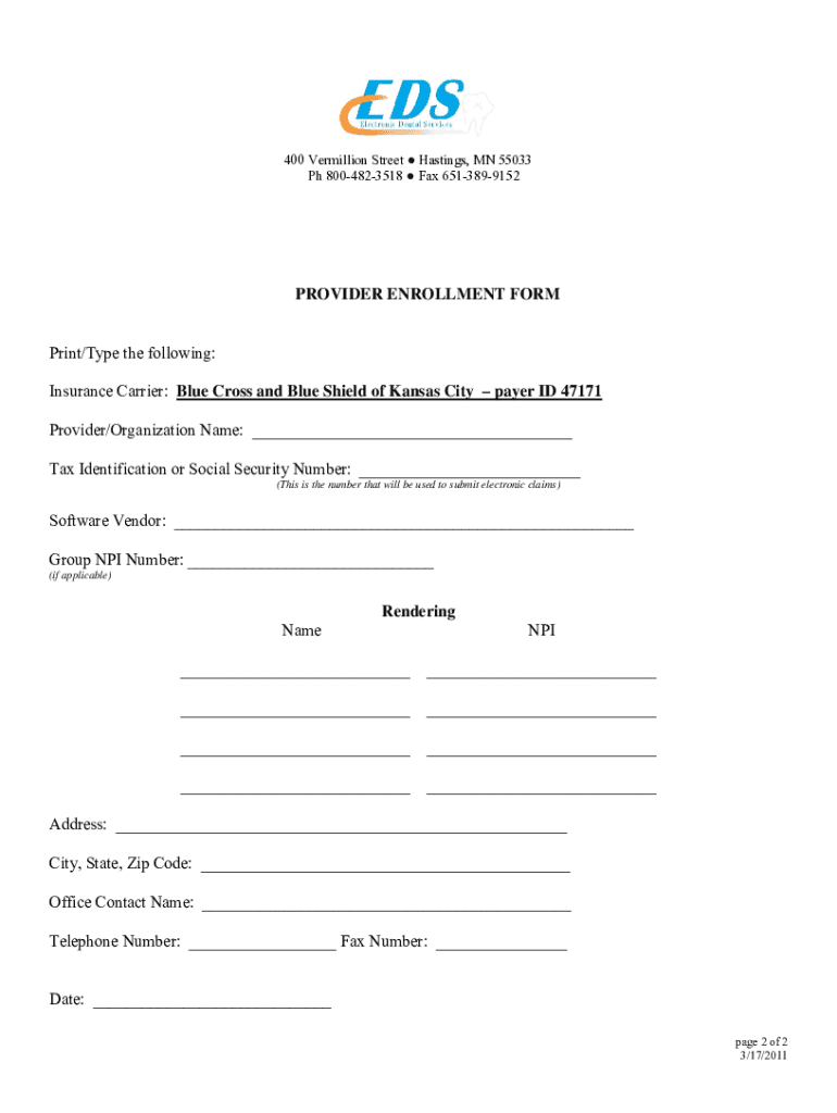 DENTAL ELECTRONIC CLAIMS ENROLLMENT REGISTRATION47171PAYER ID NUMBER