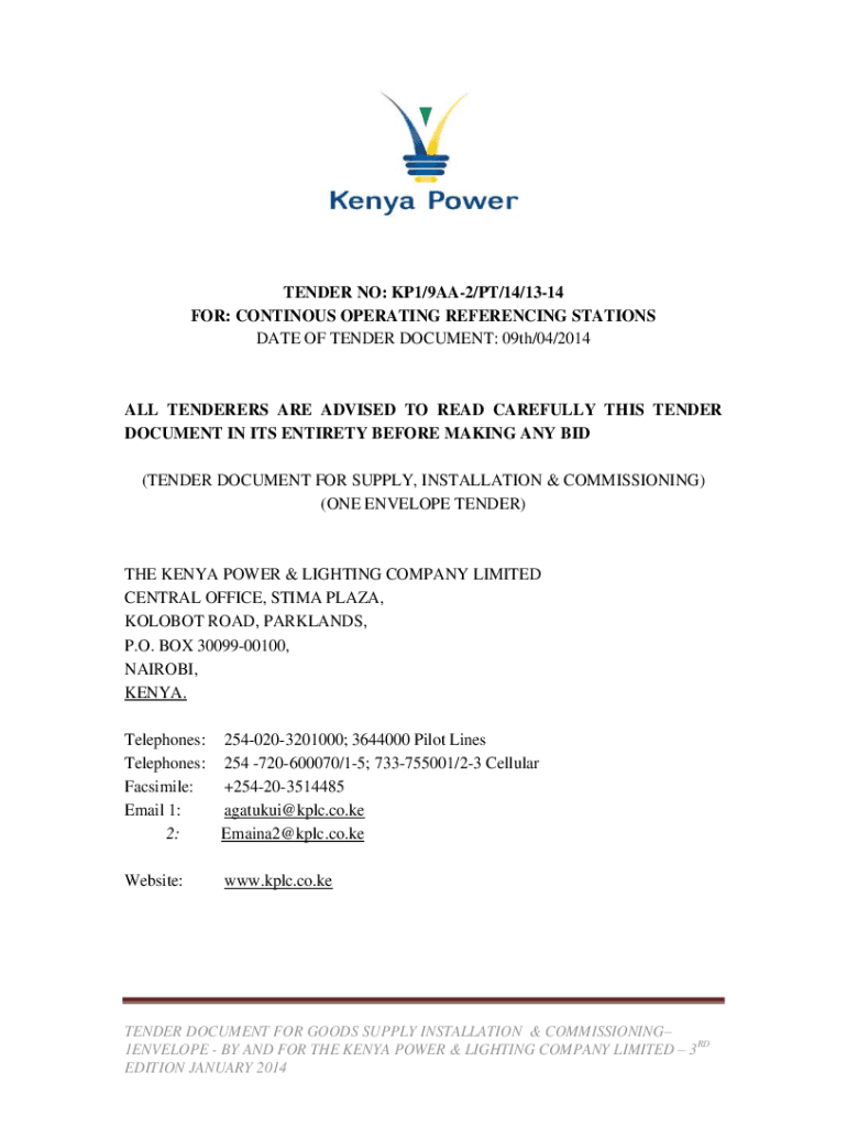 Get the free TENDER NO: KP1/9AA-2/PT/14/13-14 FOR: CONTINOUS ... - kplc co