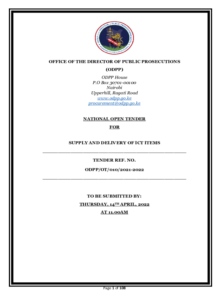 procurement@odpp.go.keNATIONAL OPEN TENDER