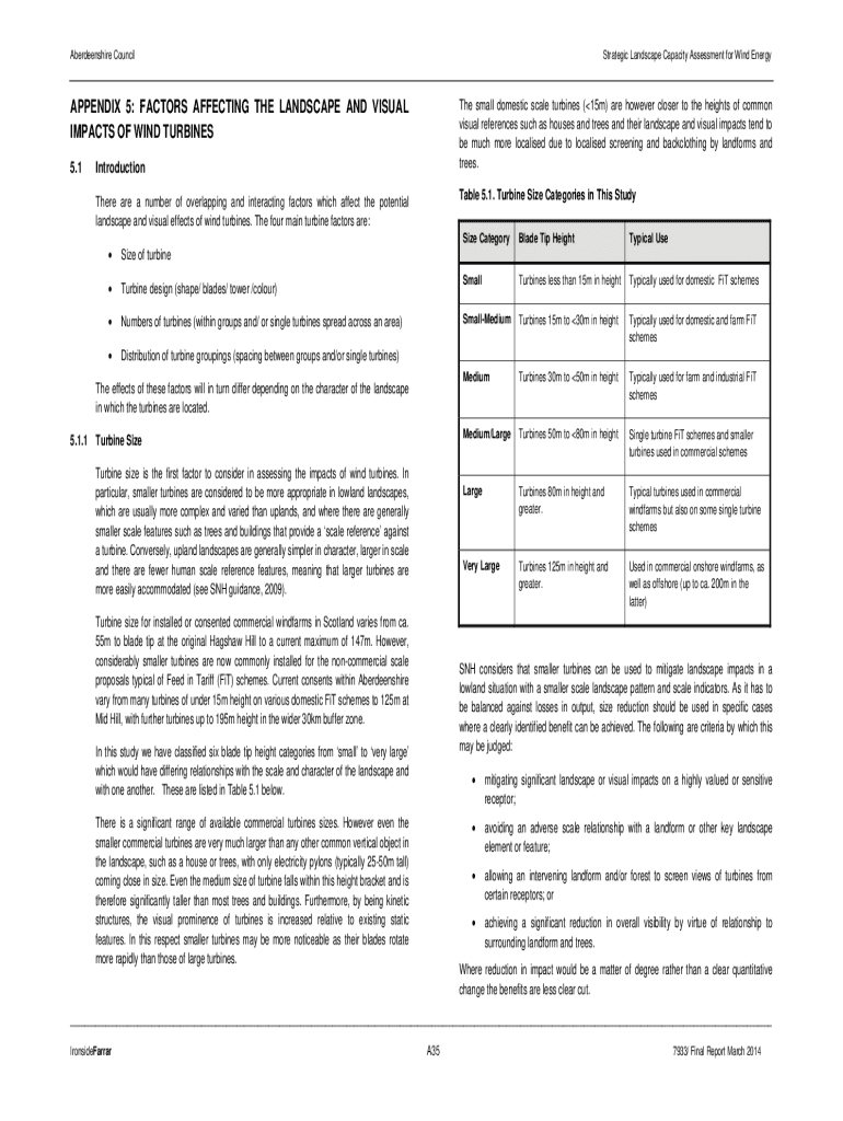 Aberdeen shire CouncilStrategic Landscape Capacity Assessment for Wind Energy small domestic scale turbines (15 m) are however closer to the heights of common