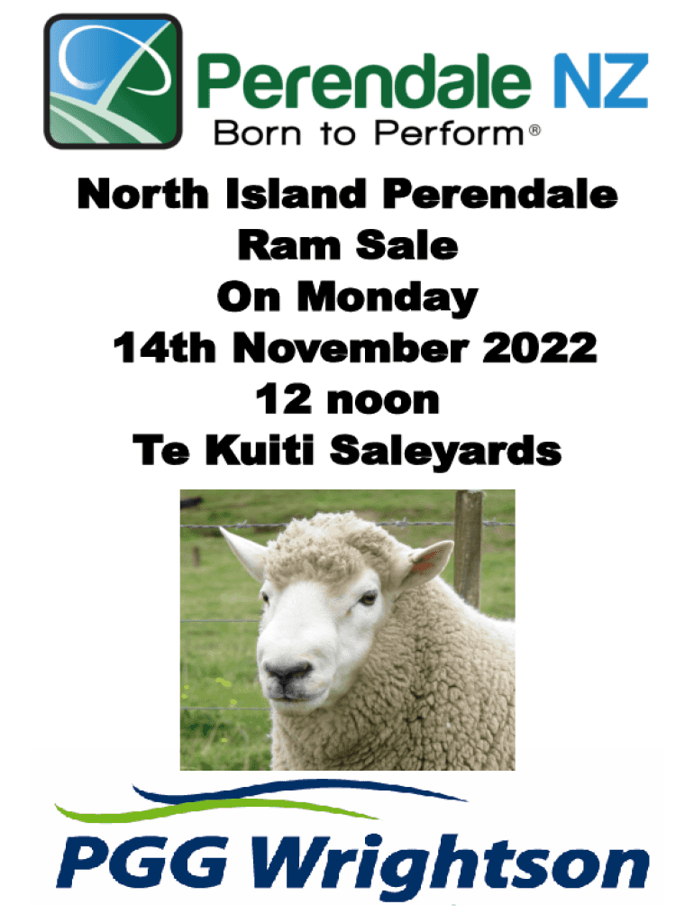 North Island Perendale Ram Sale On Monday 14th November 2022 12 noon Te Kuiti Saleyards12North Island Perendale Ram Sale Monday 14th November 2022 Te Kuiti Saleyards 12 noon Auctioneers PGG Wrightson