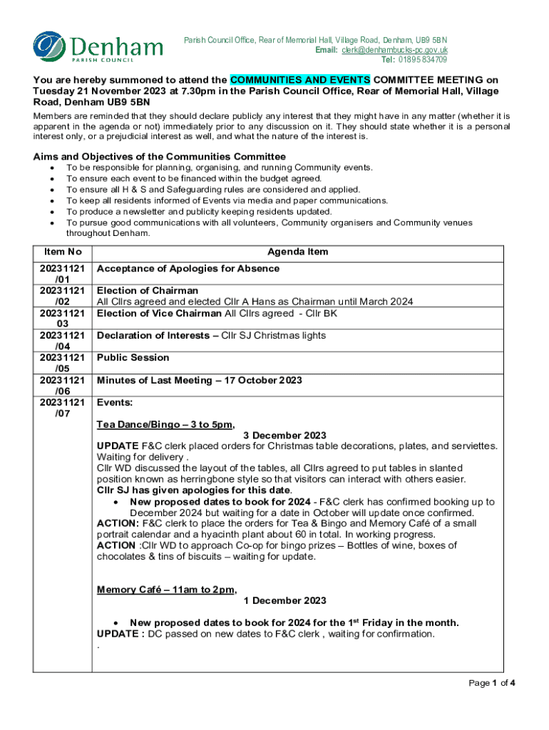 Get the free You are hereby summoned to attend the COMMUNITIES ...
