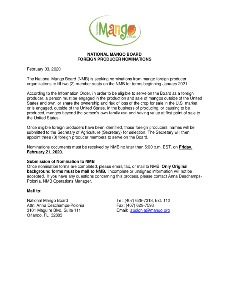 Get the free The National Mango Board Now Accepting Board Nominees