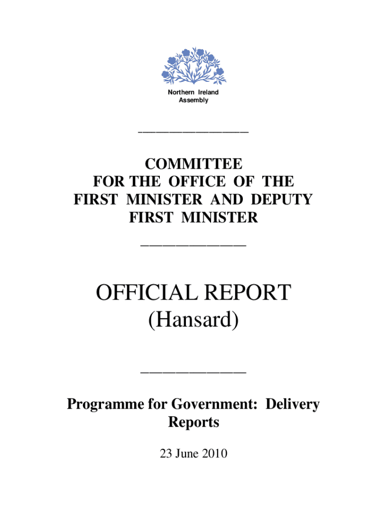 Northern Ireland Assembly___COMMITTEE FOR THE OFFICE OF THE FIRST MINISTER AND DEPUTY FIRST MINISTER ___OFFICIAL REPORT (Hansard) ___Programme for Government: Delivery Reports 23 June 2010NORTHERN