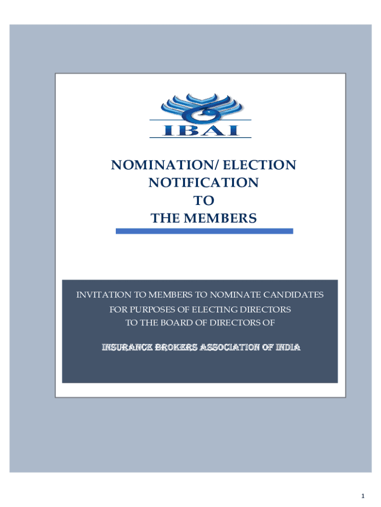 NOMINATION/ ELECTION NOTIFICATION TO THE MEMBERSINVITATION TO MEMBERS TO NOMINATE CANDIDATES FOR PURPOSES OF ELECTING DIRECTORS TO THE BOARD OF DIRECTORS OFINSURANCE BROKERS ASSOCIATION OF INDIA1INVITATION