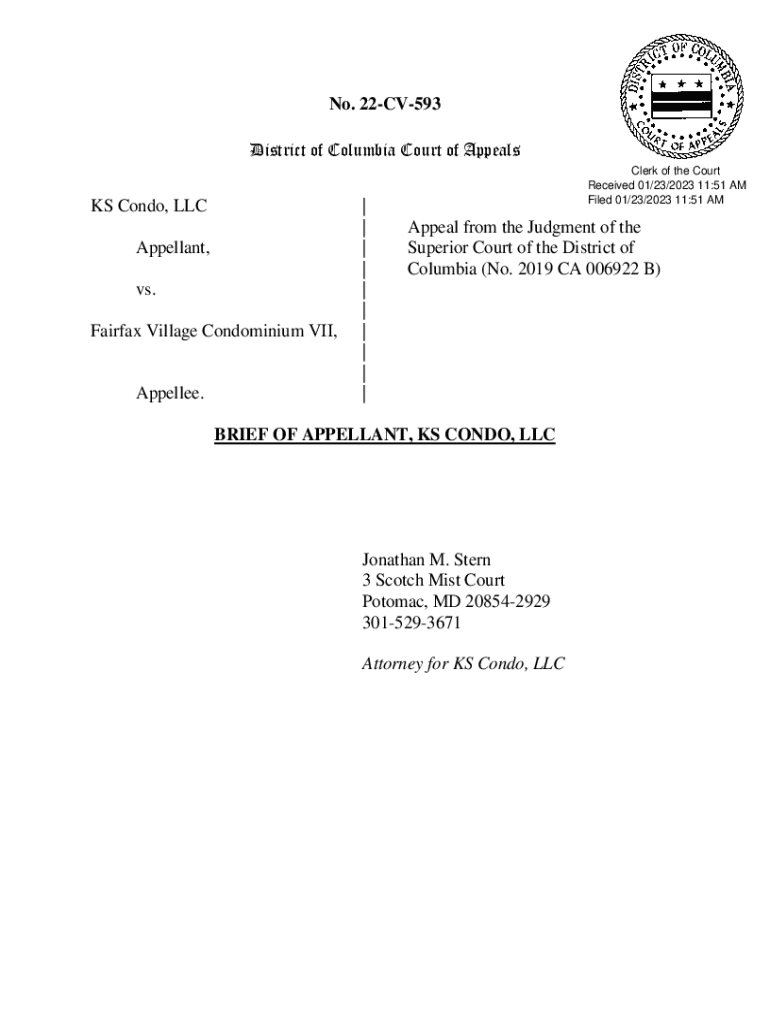 No. 22CV593 District of Columbia Court of Appeals KS Condo, LLC Appellant, vs. Fairfax Village Condominium VII,Appellee.| | | | | | | | | |Clerk of the Court Received 01/23/2023 11:51 AM Filed 01/23/2023
