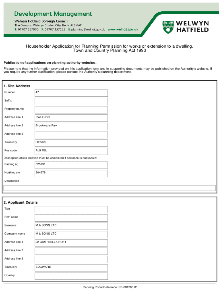 Householder Application for Planning Permission for works or extension to a dwelling. Town and Country Planning Act 1990 Publication of applications on planning authority websites. Please note that