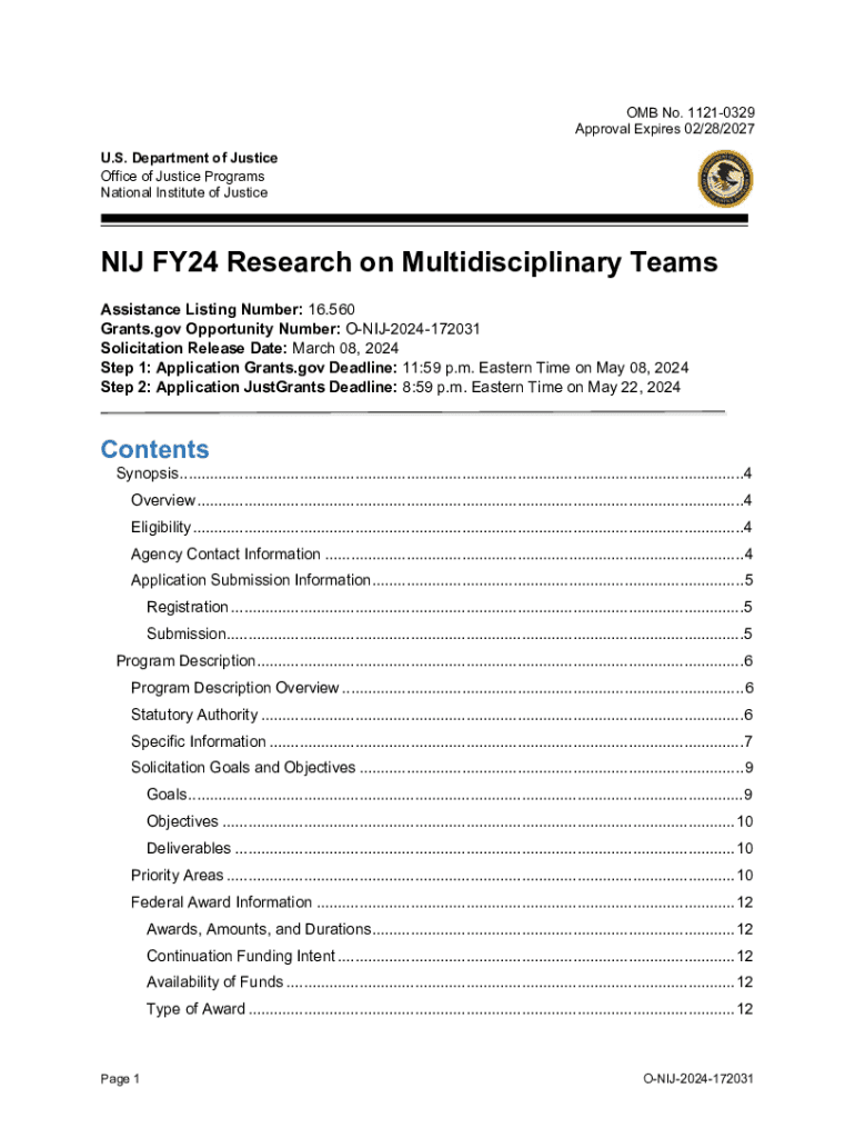 National Institute of Justice FY24 Research on Multidisciplinary Teams