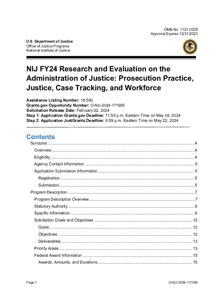 Researchers applying for grants from the National Institute of Justice (NIJ) may need to fill out the NIJ FY24 research form.