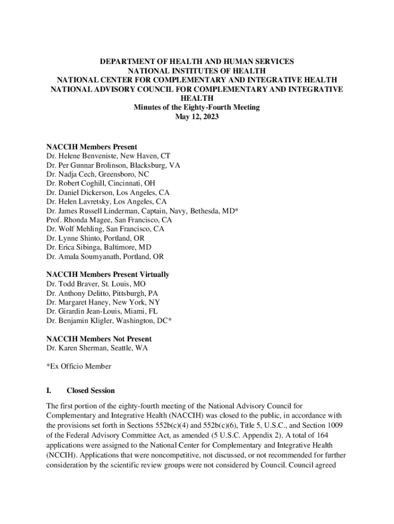 NATIONAL ADVISORY COUNCIL FOR COMPLEMENTARY AND INTEGRATIVE