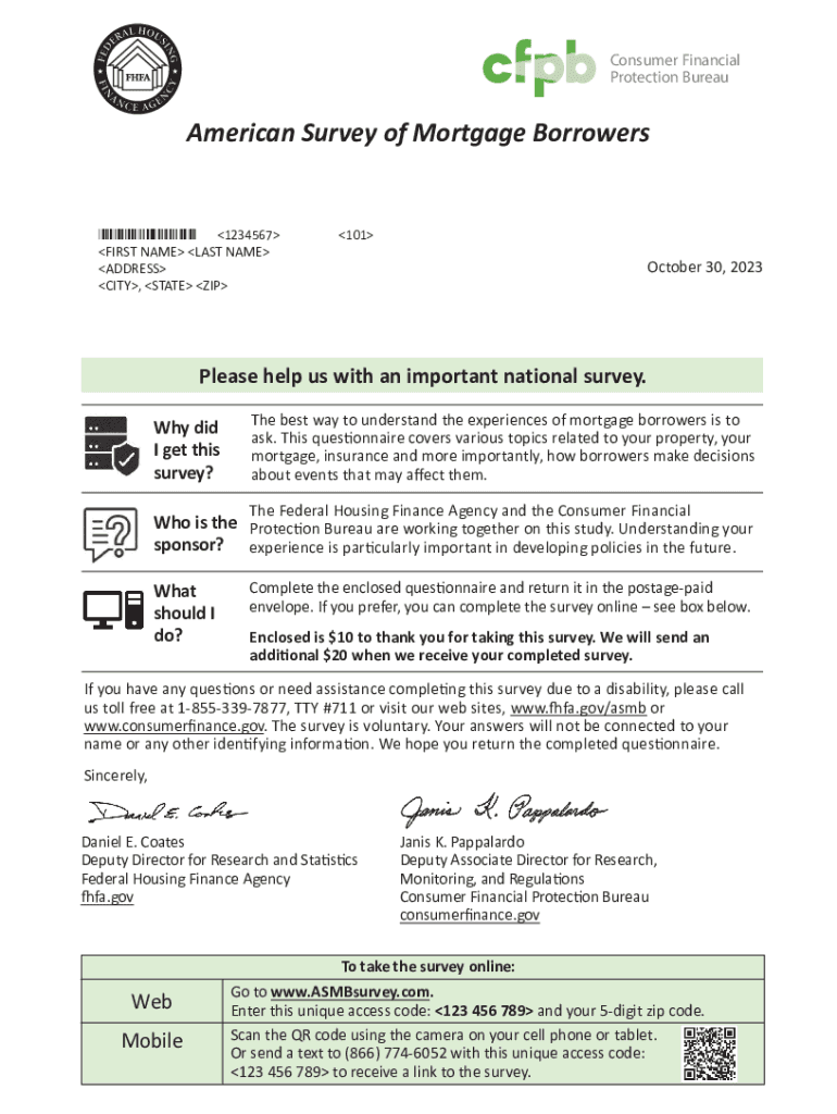 Obtener el gratis Letter for the American Survey of Mortgage Borrowers