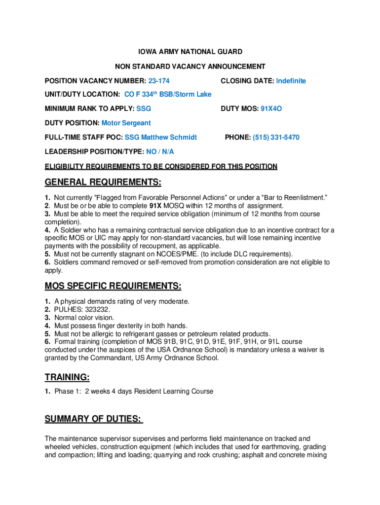 POSITION VACANCY NUMBER: 23174CLOSING DATE: Indefinite UNIT/DUTY LOCATION: CO F 334th BSB/Storm Lake
