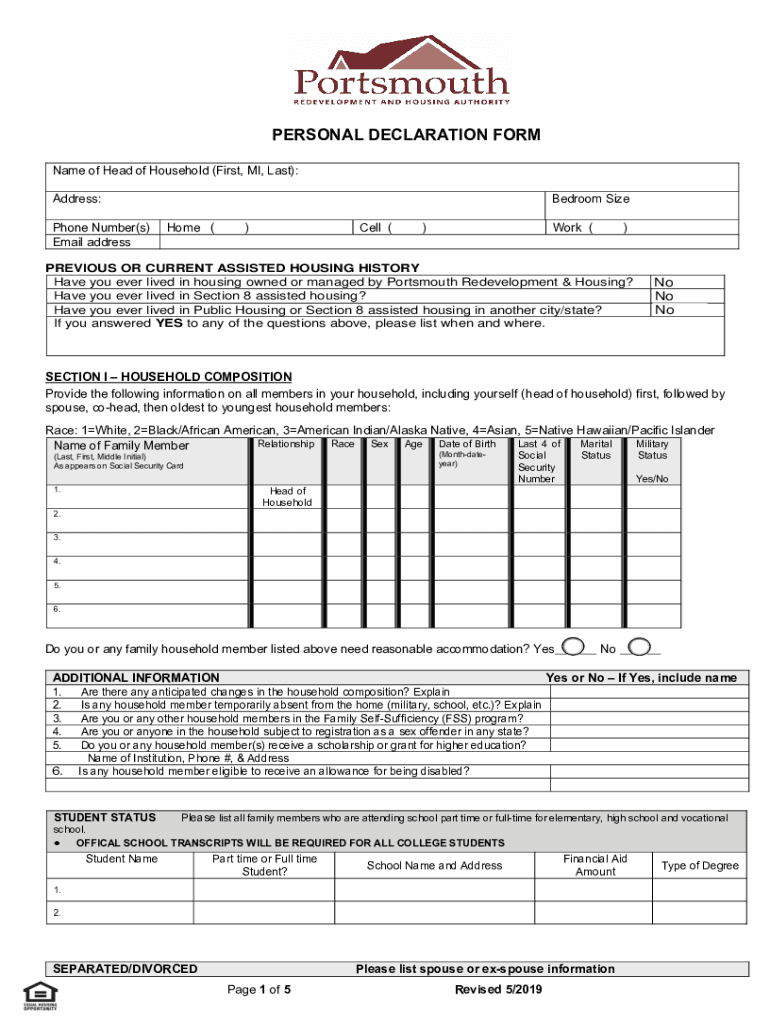 PERSONAL DECLARATION FORM