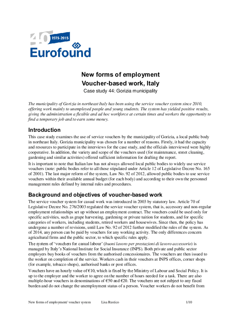 Get the free New forms of employmentCase study Services vouchers in Gorizia municipality of Goriz...