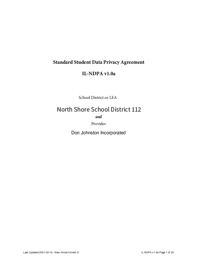Standard Student Data Privacy Agreement ILNDPA v1.0aSchool District or LEANorth Shore School District 112 and ProviderDon Johnston IncorporatedLast Updated 20210315 New Illinois Exhibit GILNDPA v1.0a