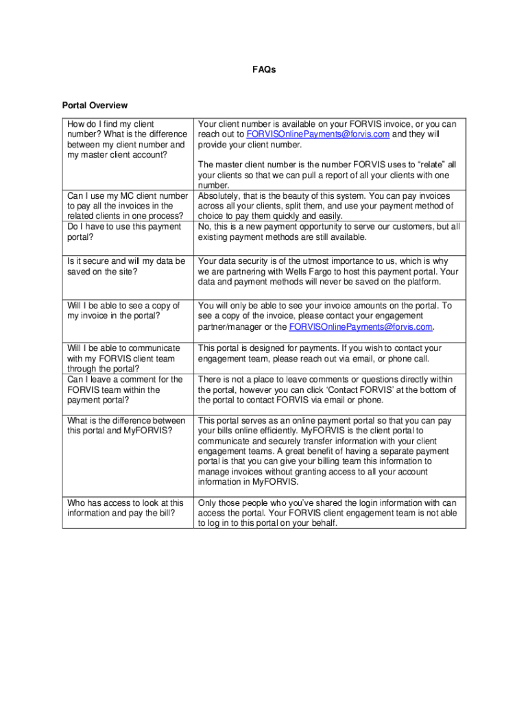 Get the free FAQs Portal Overview How do I find my client number? ...