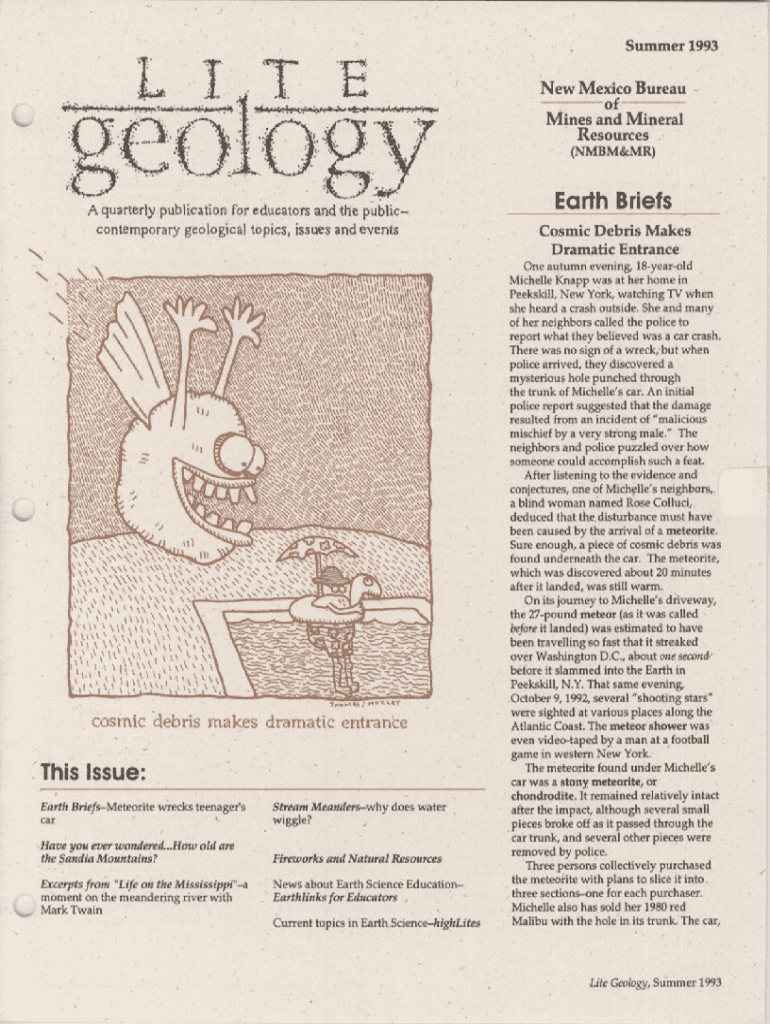 Summer1993L.,T .Ely:,New Mexico Bureau of Mines and Mineral Resources (NMBM&MR):.gi A quarterlypubhcat,on for educatorsandtlie pubhc contemporary geologicaltopics, issues andevents cosmic debrismakes