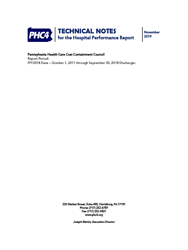 TECHNICAL NOTESfor the Hospital Performance Report Pennsylvania Health Care Cost Containment Council Report Period: FFY2018 Data October 1, 2017 through September 30, 2018 Discharges225 Market Street,