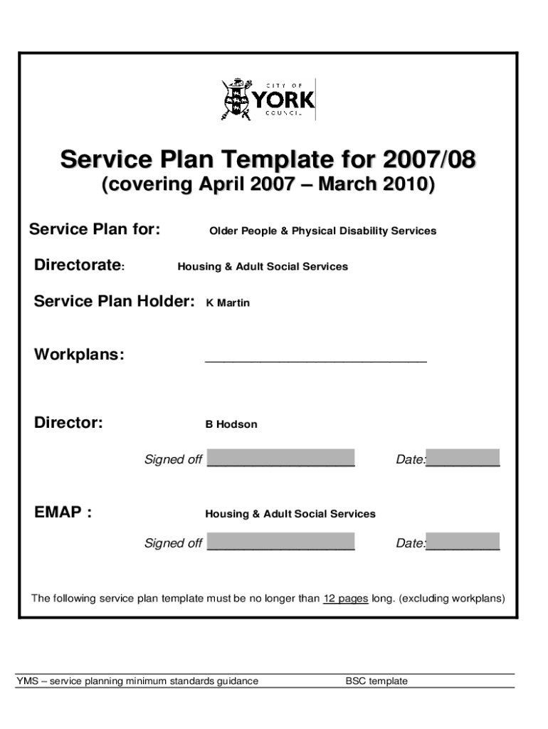 Service Plan Template for 2007/08 (covering April 2007 March 2010) Service Plan for: Directorate:Older People & Physical Disability Services Housing & Adult Social ServicesService Plan Holder:K MartinWorkplans:___Director:B