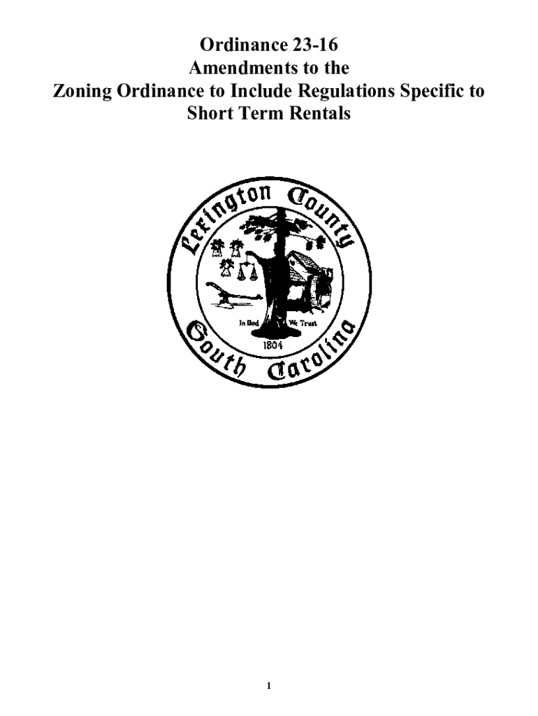 Ordinance 2316 Amendments to the Zoning Ordinance to Include Regulations Specific to Short Term Rentals1ARTICLE 2 APPLICATION OF REGULATIONS Chapter 1. Schedule of Permitted Uses 21.10Description