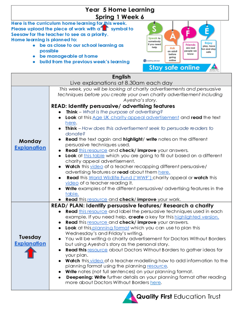 Get the free Year 5 Home Learning Spring 1 Week 6
