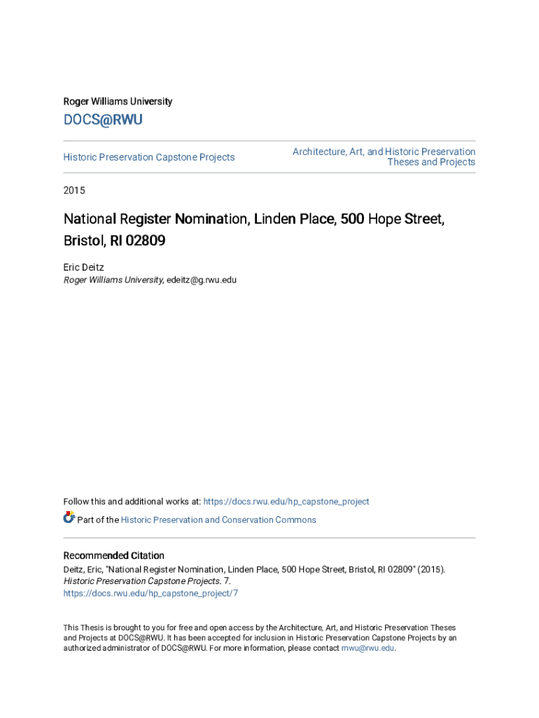 Get the free National Register Nomination, Linden Place, 500 Hope Street, Bristol, RI 02809 - doc...