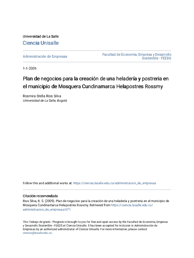 Universidad de La SalleCiencia Unisalle Administracin de EmpresasFacultad de Economa, Empresa y Desarrollo Sostenible FEEDS112009Plan de negocios para la creacin de una heladera y postreria en el