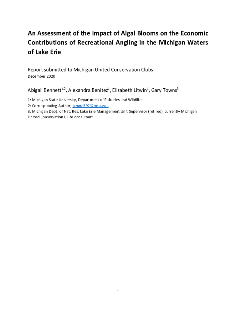 An Assessment of the Impact of Algal Blooms on the Economic Contributions of Recreational Angling in the Michigan Waters of Lake Erie Report submitted to Michigan United Conservation Clubs December