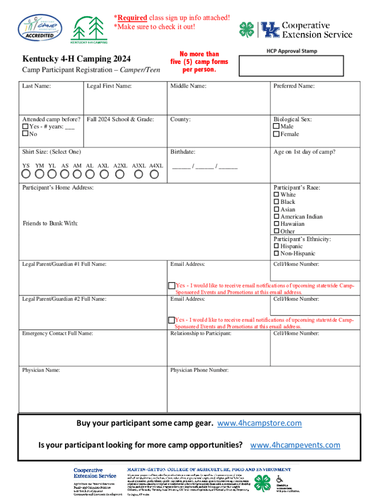 Get the free NEW FOR 2024: No more than 5 camp forms per person will ... - campbell ca uky