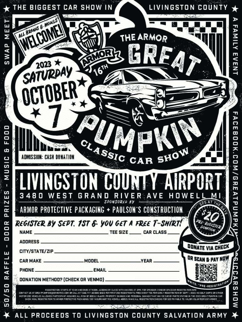 Get the free 2023 ARMOR Great Pumpkin Classic Car Show Registration Form