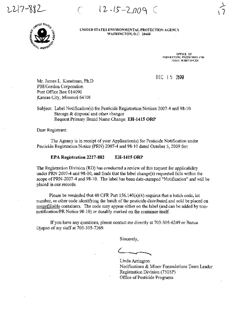 TOXIC SlJBSTANCESDEC 1 5 2009Mr. James L. Kunstman, Ph.D
