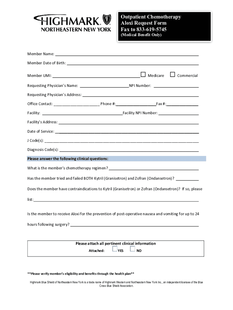 Outpatient Chemotherapy Request Form Fax to 8336195745 (Medical Benefit Only)Member Name: Member Date of Birth: Member UMI: ___ Requesting Physicians Name: Medicare CommercialNPI Number:Requesting