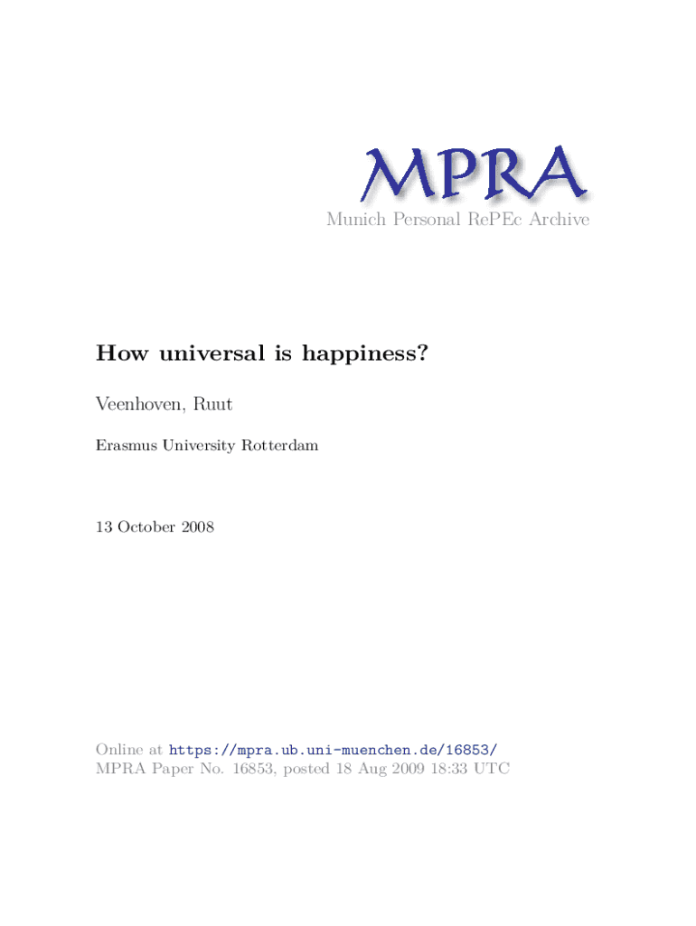 Get the free HOW UNIVERSAL IS HAPPINESS - mpra ub uni-muenchen