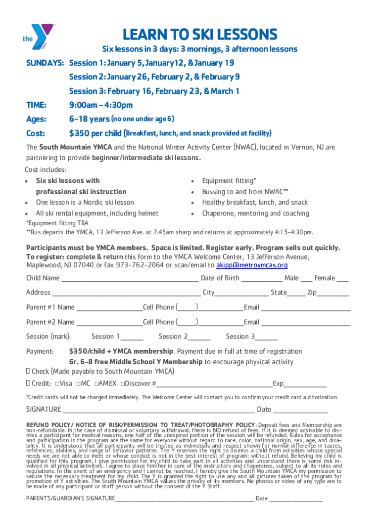 LEARN TO SKI LESSONSSix lessons in 3 days: 3 mornings, 3 afternoon lessons SUNDAYS: Session 1: January 5, January12, & January 19 Session 2: January 26, February 2, & February 9 Session 3: February