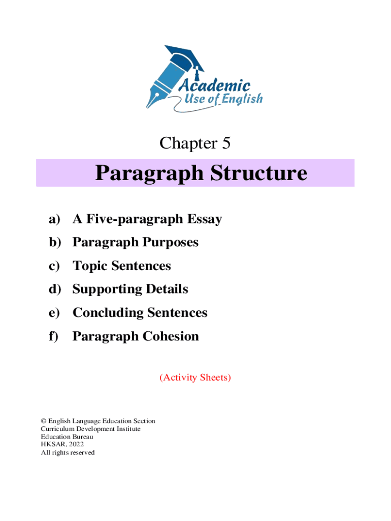 Chapter 5Paragraph Structure a) A Fiveparagraph Essay b) Paragraph Purposes c) Topic Sentences d) Supporting Details e) Concluding Sentences f) Paragraph Cohesion (Activity Sheets) English Language