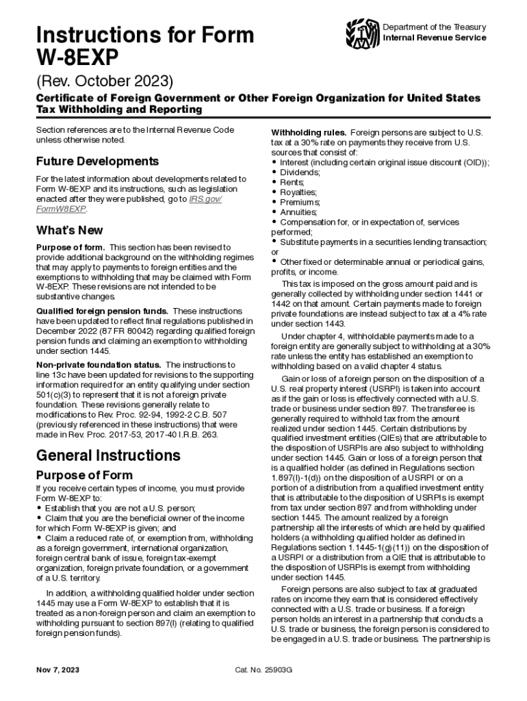 Instructions for Form W8EXPDepartment of the Treasury Internal Revenue Service(Rev. October 2023)Certificate of Foreign Government or Other Foreign Organization for United States Tax Withholding and