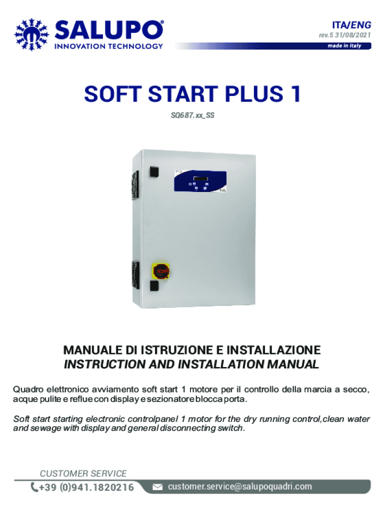 ITA/ENG rev.5 31/08/2021SOFT START PLUS 1 SQ687.xx_SSMANUALE DI ISTRUZIONE E INSTALLAZIONE INSTRUCTION AND INSTALLATION MANUAL Quadro elettronico avviamento soft start 1 motore per il controllo della