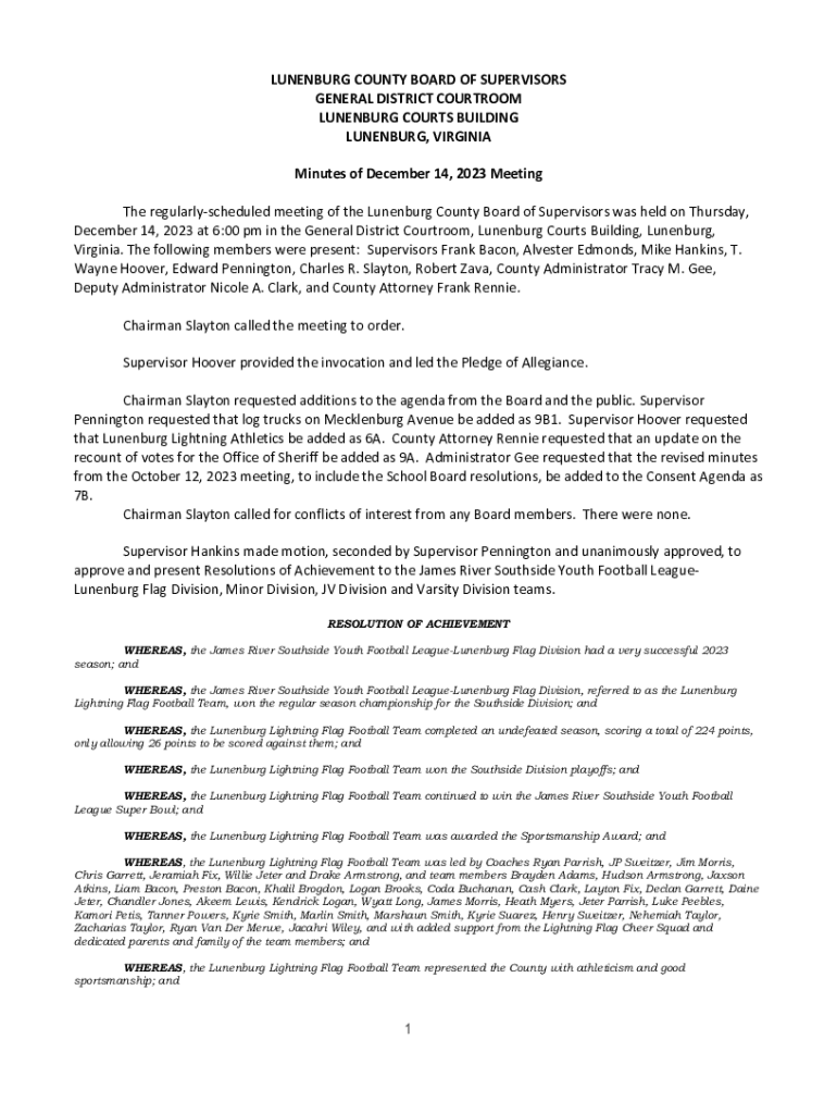 Get the free December 14, 2023 at 6:00 pm in the General District Courtroom, Lunenburg Courts Bui...