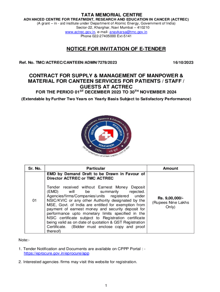 Get the free NOTICE FOR INVITATION OF E-TENDER