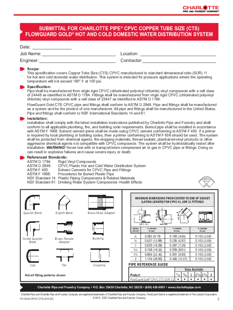 Submittal Package FlowGuard Gold CPVC CTS System (October 20, 2023)SUBMITTAL PACKAGESUBPACFGG2023 Charlotte Pipe and Foundry Co.FlowGuard Gold CPVC CTS Submittal PackageTable of Contents for FlowGuard