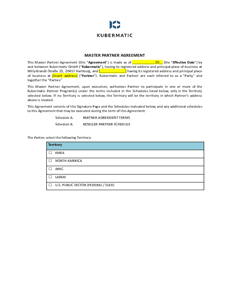 Fill out your kubermaticpartner agreementreseller partner schedulegermanyv170822 online with pdfFiller!