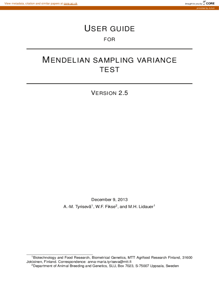 Get the free USER GUIDE MENDELIAN SAMPLING VARIANCE TEST