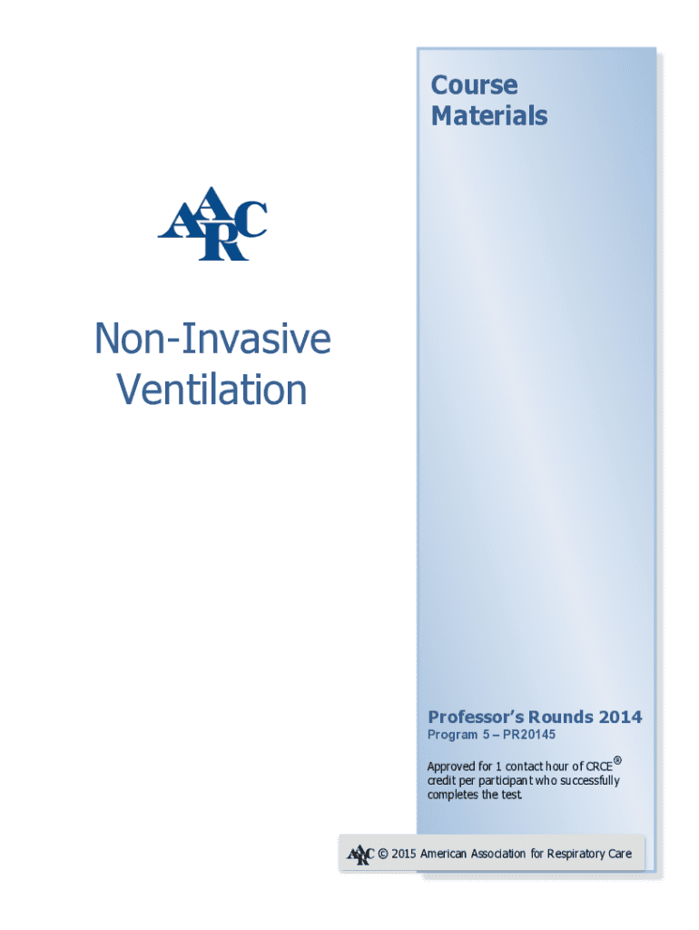 Course Materials NonInvasive VentilationProfessors Rounds 2014 Program 5 PR20145 Approved for 1 contact hour of CRCE credit per participant who successfully completes the test. 2015 American Association