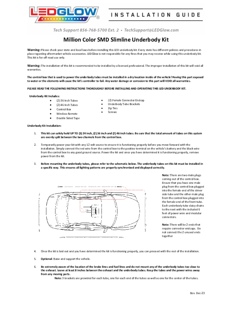 Million Color SMD Slimline Underbody Kit Warning: Please check your state and local laws before installing this LED underbody kit. Every state has different policies and procedures in place regarding