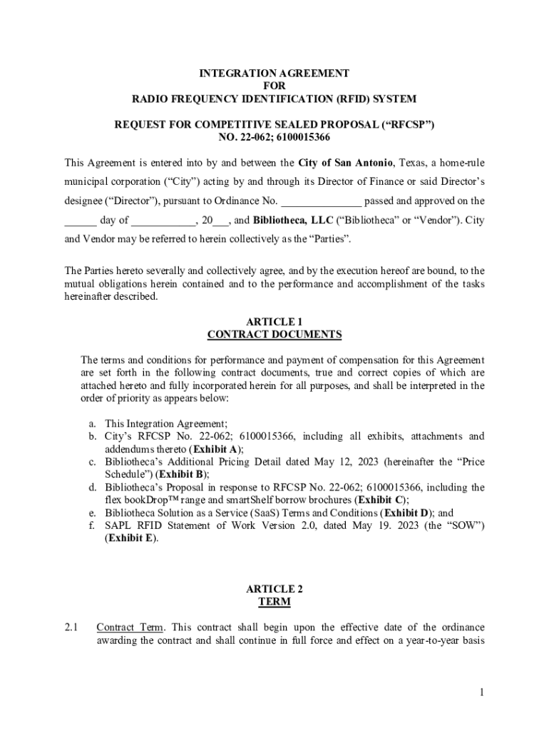 Get the free Integration Agreement RFCSP 22-062 6100015366 - Final
